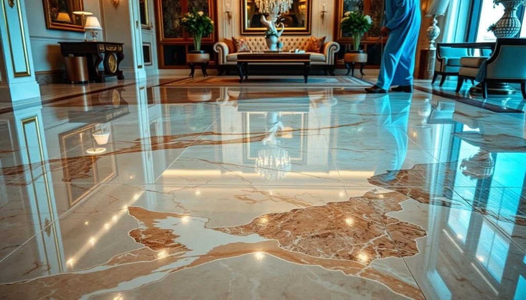 📌 تلميع البلاط بالكريستال والدايموند للحصول على لمعة تدوم طويلاً.